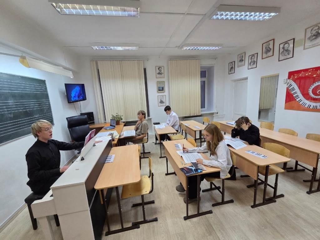 22 октября на музыкальном отделении Детской школы искусств прошел открытый урок по дисциплине «Сольфеджио» на тему «Главные трезвучия лада и их обращение». Урок в 4 «В» классе провел преподаватель теоретических дисциплин Семен Игоревич Косов.