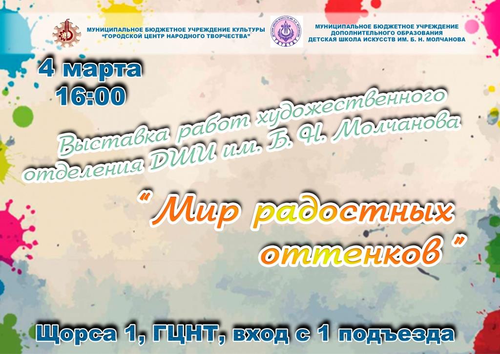 4 марта в Городском центре народного творчества состоится открытие выставки работ учащихся художественного отделения «Мир радостных оттенков».