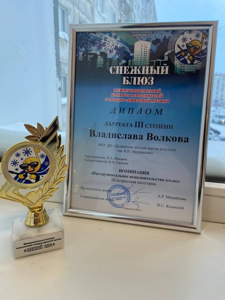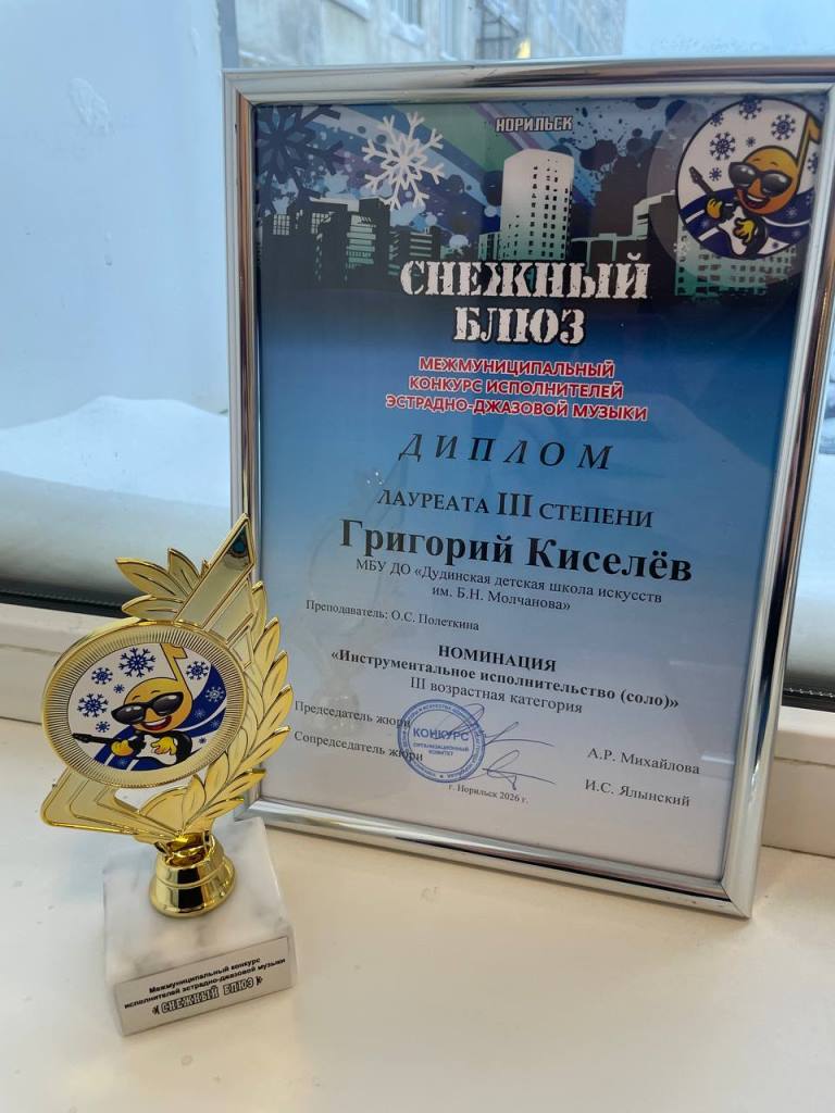 С 12 по 15 февраля в Норильске прошёл конкурс исполнителей эстрадно-джазовой музыки «Снежный блюз». Традиционно в нем прияли участие воспитанники народного и духового отделений Детской школы искусств им. Б.Н. Молчанова.