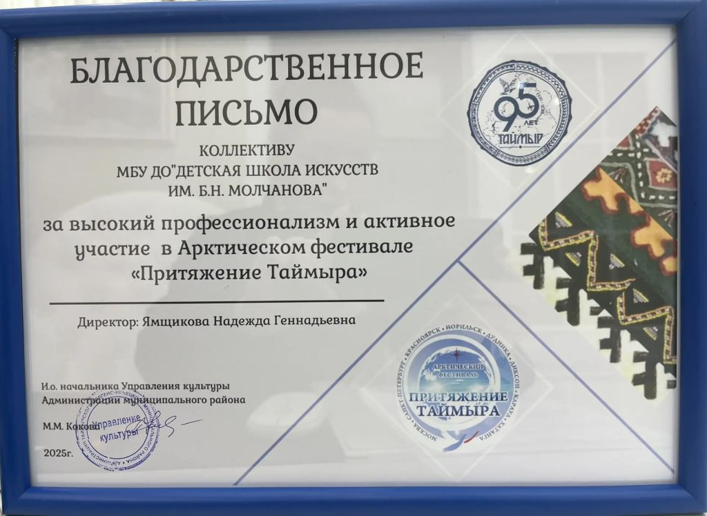 На прошлой неделе мы сообщали, что преподаватель художественного отделения Детской школы искусств им. Б.Н. Молчанова Нина Викторовна Кольман вошла в число победителей конкурса среди лучших творческих работников, работников организаций культуры и работников образовательных организаций в области культуры, талантливой молодежи в сфере культуры и искусства Министерства культуры Красноярского края в номинации «За личный вклад в сохранение и развитие культуры Красноярского края».