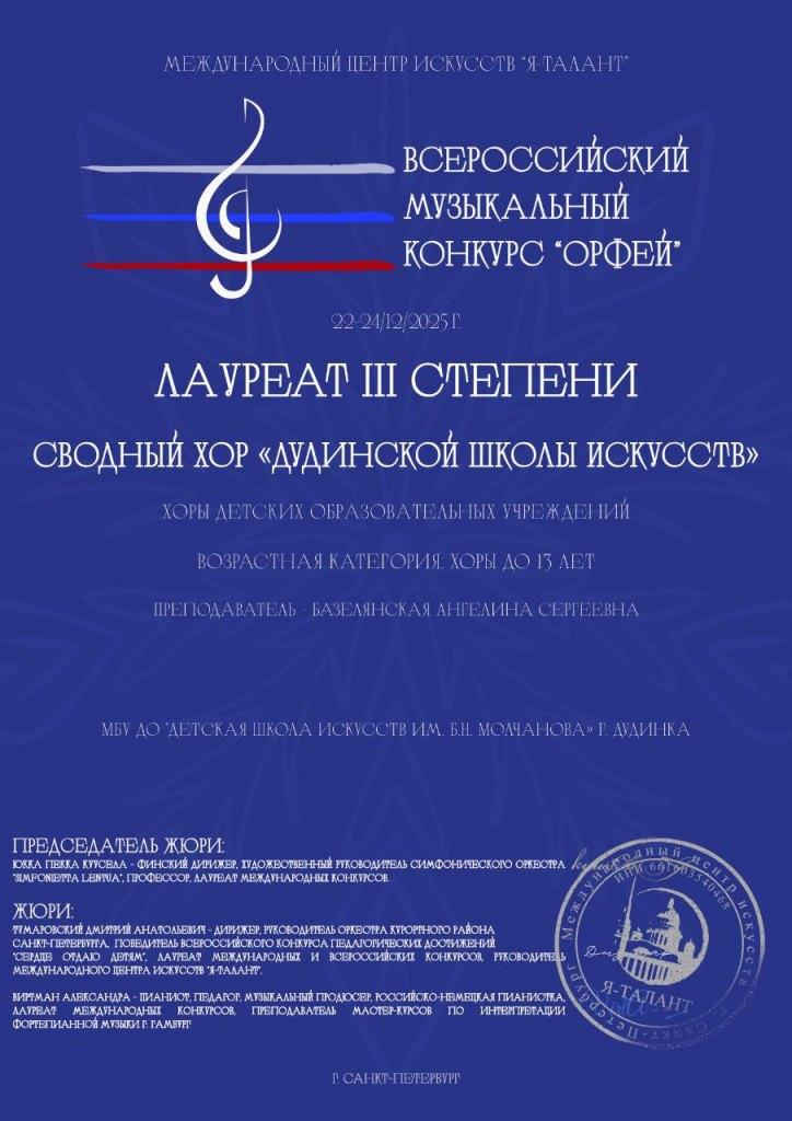 С 22 по 24 декабря в городе Санкт-Петербурге прошел Всероссийский музыкальный конкурс «Орфей».