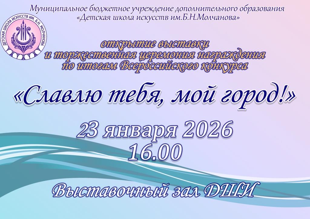 23 января в Детской школе искусств им. Б.Н. Молчанова состоится подведение итогов Всероссийского конкурса детского художественного творчества «Славлю тебя, мой город!».